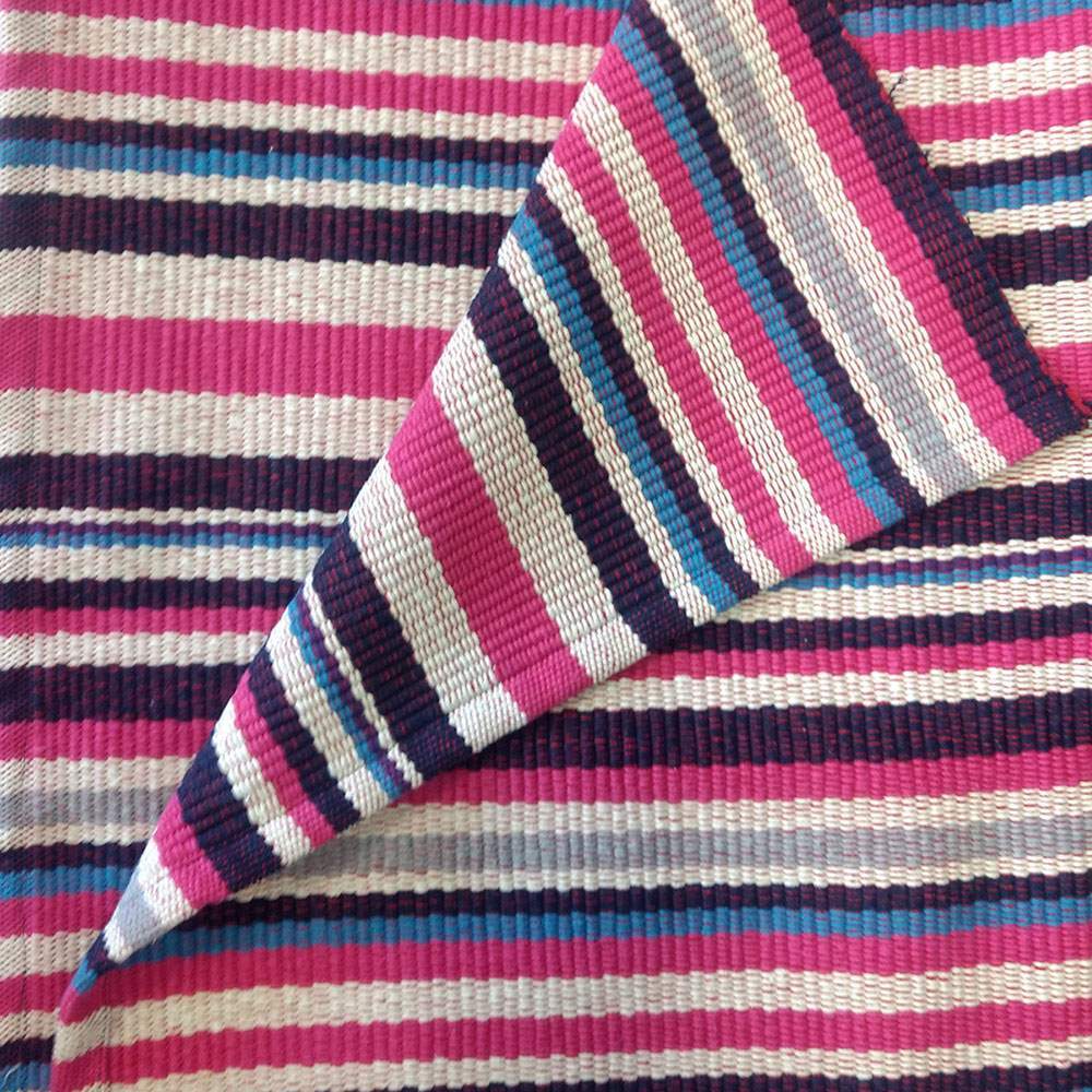 Alfombra a rayas de algodón lavable 120 X 180 cms. El rosa es un color que cada vez se usa más en los ambientes en pequeñas dosis.