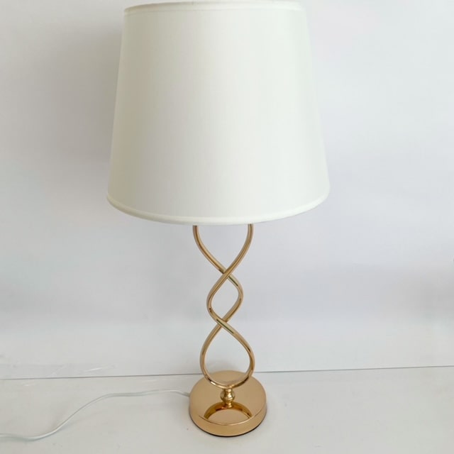 Lámpara metálica color dorado diseño infinito con pantalla blanca y altura de 60 cm, Ideal para ambientes relajados y libres que son de gran importancia en el hogar o la oficina de trabajo.